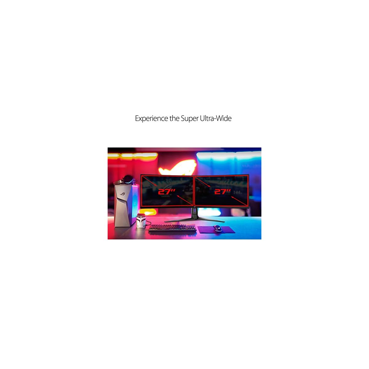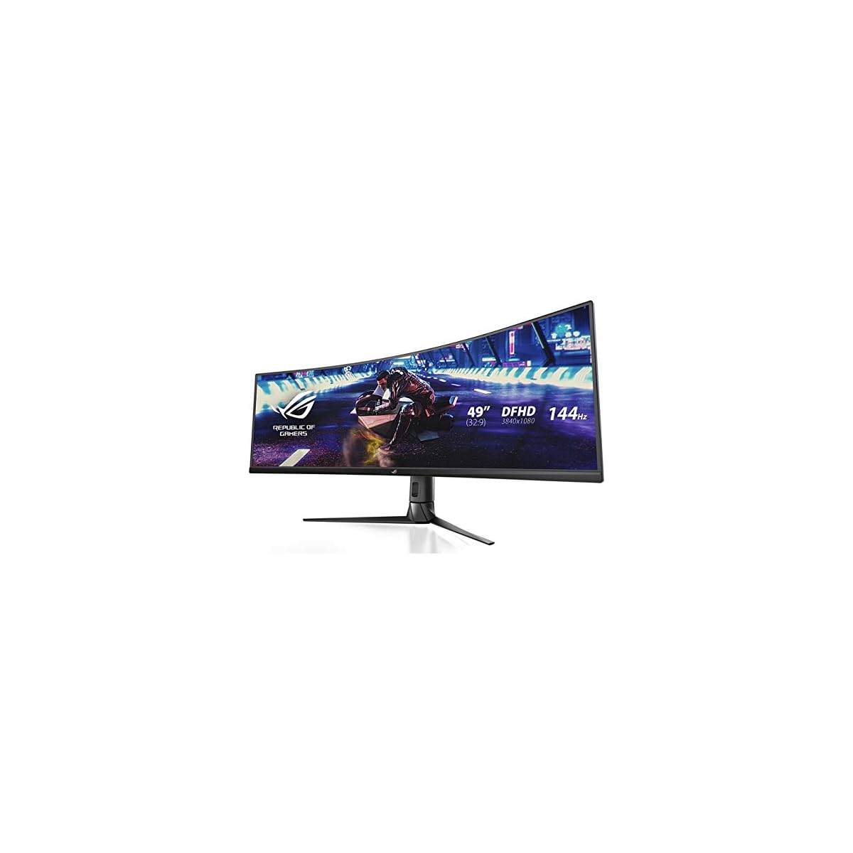 Monitor da 49″ DFHD (3840 x 1080) 1800R curvo super ultra-wide con 144Hz e FreeSync 2 HDR per giochi coinvolgenti e fluidi con connettività DisplayPort e HDMI