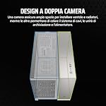 Design a doppia camera: Promuove un raffreddamento efficace e una costruzione più pulita e organizzata, con una camera dotata di numerosi supporti per ventole e radiatori e l’altra che offre spazio in abbondanza per il passaggio dei cavi, l’alloggiamento delle unità e l’installazione dell’alimentatore.