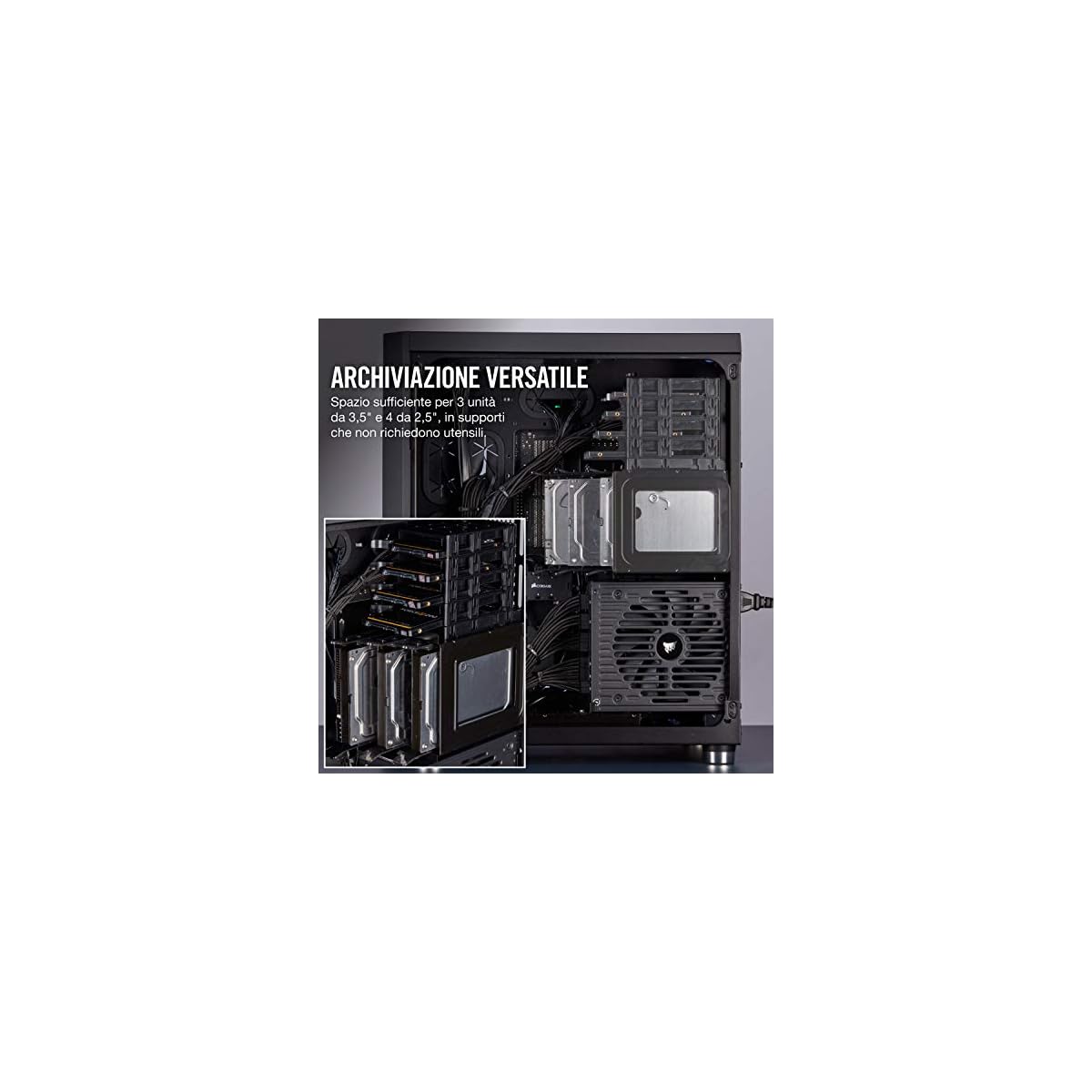 Gli accessori inclusi con questo case sono contenuti all’interno del compartimento dischi 3.5″