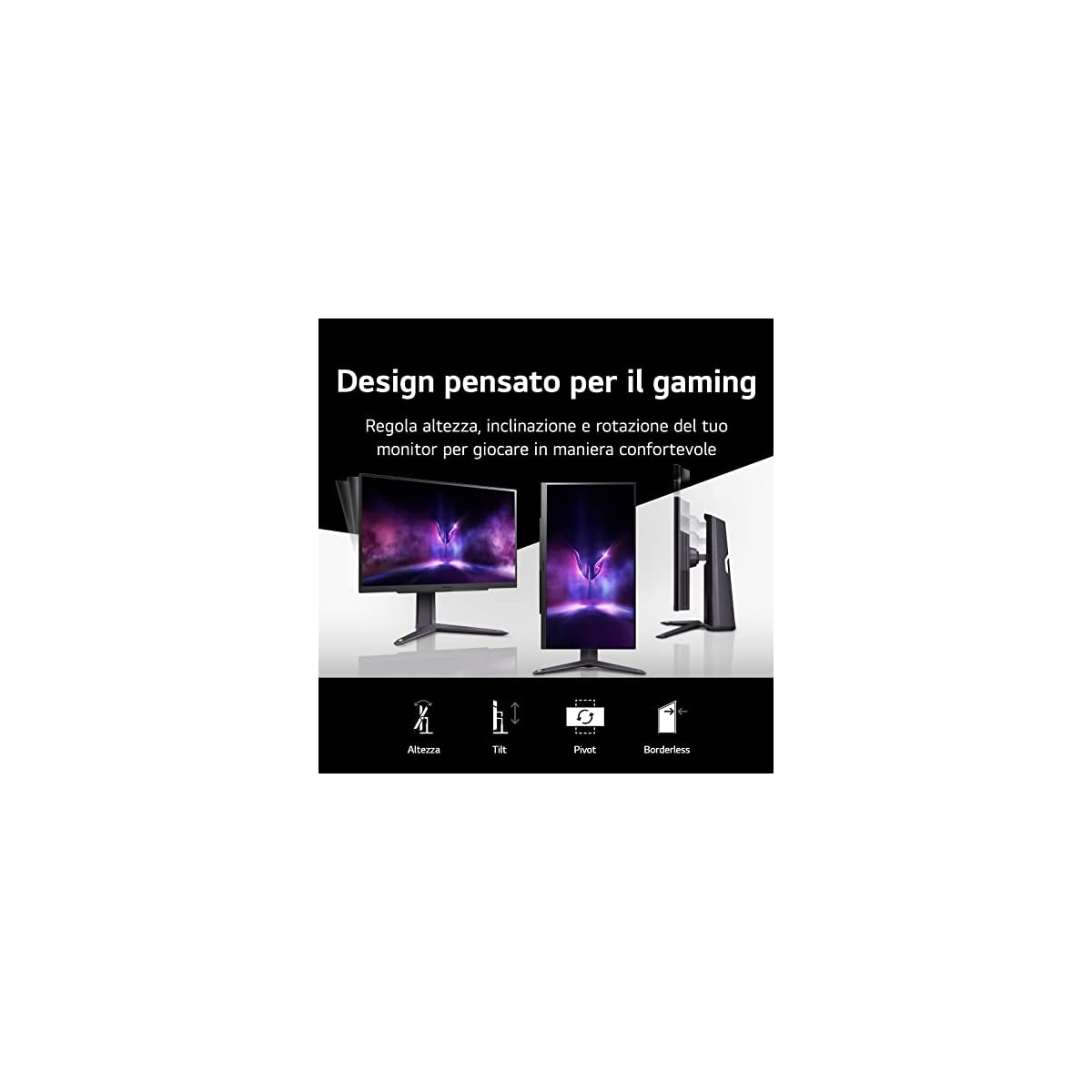 Connessioni: 2x HMDI 2.0 (HDCP 2.2), 1x Display Port 1.4, Uscita Audio (Jack), Attacco VESA 100×100, Stand Pivot, Dimensioni con Stand: 614.2×574.8×274.4 mm(Up)