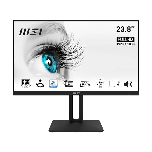 MSI PRO MP242AP Monitor 24″ IPS FHD (1920×1080), 100Hz / 1ms, EyeCare, Altoparlanti integrati, Schermo antiriflesso, Pivot, HDMI, DP, VESA