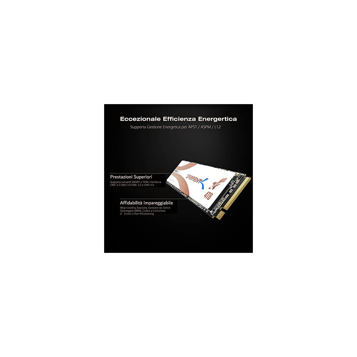 Interfaccia M.2 NVMe PCIe Gen4 x4. Conforme alle specifiche PCIe 4.0 e NVMe 1.3.