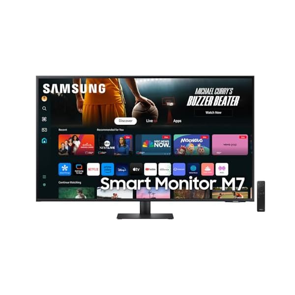 Contenuto: Smart Monitor M7 43’’, Include cavo di alimentazione, cavo HDMI , cavo USB-C e telecomando, Dimensioni con base (LxAxP) 96,55 x 69,93 x 24,72 cm