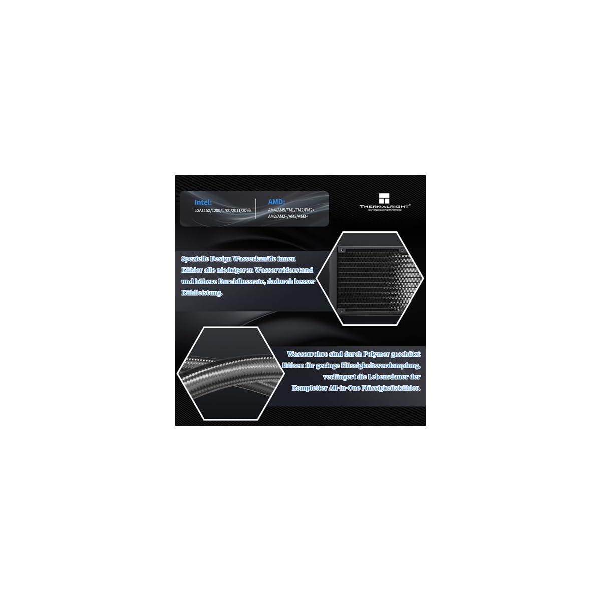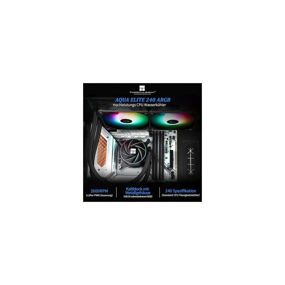 Migliore raffreddamento: testina di raffreddamento ad acqua con piano a specchio in rame viola, piastra di raffreddamento 240 in alluminio nero, tubo dell’acqua in polimero anti-compressione e ventola ARGB da 120 mm in configurazione standard, per creare un sistema di raffreddamento ad acqua all-in-one a bassa resistenza e garantire elevato raffreddamento, bassa evaporazione e lunga durata.