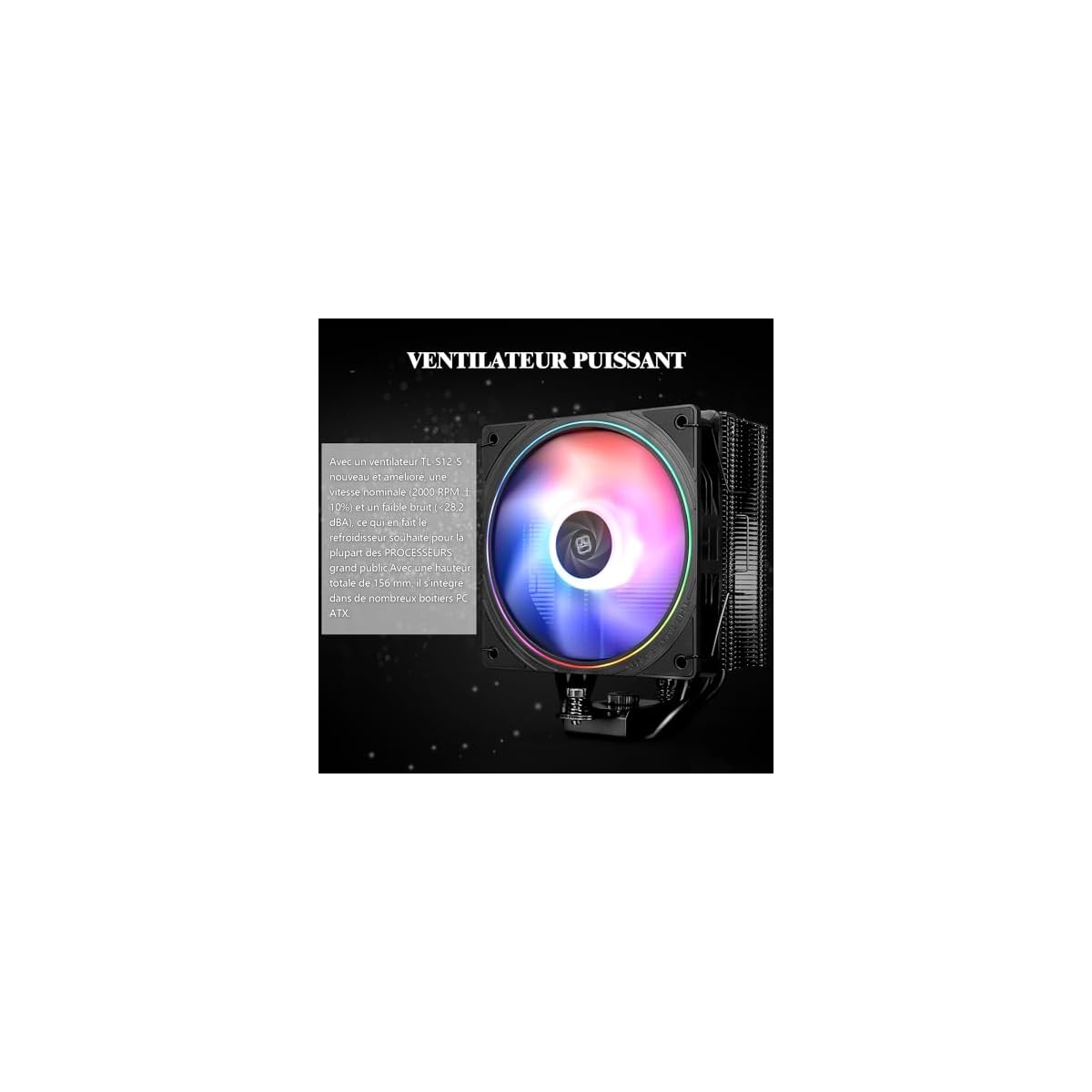 [Ventola PWM] TL-S12-S; Standard 120 mm PWM Ventola di potenza: 120 x 120 x 25 mm (4,72 x 4,72 x 0,98 pollici); Velocità ventola (RPM): 2000 RPM±10%; connettore di alimentazione: 4 poli; Voltaggio: 12 V DC; portata aria: 68.9. CFM (max); rumore. Livello ≤ 28,2 dB (A), ventola ad alte prestazioni combinata con efficiente dissipatore di calore, per offrire il miglior effetto di raffreddamento