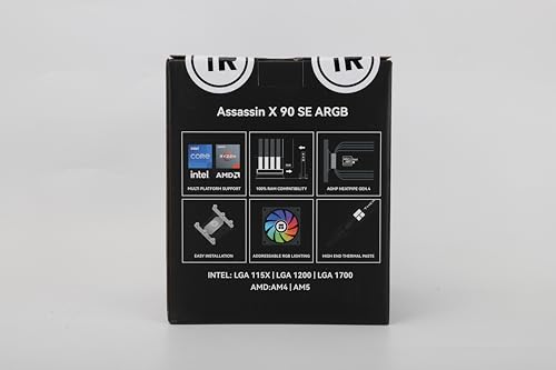Specifiche del prodotto: AX90SE ARGB; dimensioni del dissipatore di calore: 94 (L)x77(B)x118(H)mm (3,7 x 3,0 x 4,65 pollici); materiale dissipatore: alluminio, il corpo principale adotta il processo touch HDT diretto e fine trattamento superficiale in puro rame, il corpo principale è pieno di lamelle in alluminio per portare la massima superficie di raffreddamento, combinato con Ventola ad alta velocità, può giocare perfettamente il radiatore l’effetto di raffreddamento più forte.