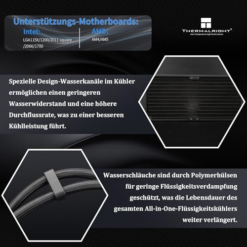Thermalright Core Matrix 240 Black CPU – Refrigeratore d’acqua con 2 ventole PWM, velocità della pompa dell’acqua 2150 giri/min, cuscinetti S-FDB, per AMD AM4 / AM5, Intel LGA1150 / 1151/1200 /