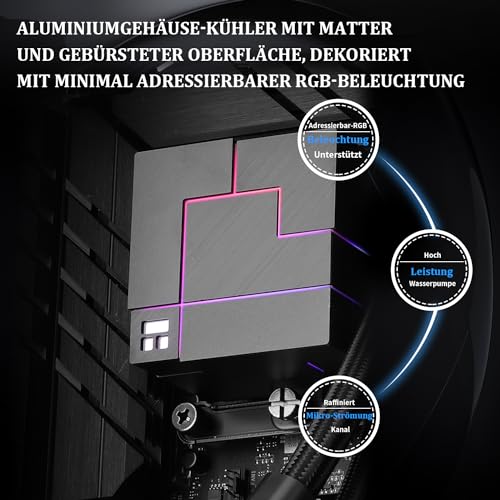 [Sincronizzazione ARGB] L’ARGB dell’intestazione di raffreddamento ad acqua è sincronizzato con il pin 5V-3 sulla scheda madre per ottenere la sincronizzazione della luce, effetti di luce morbida a colori da 1600 W, raffreddamento efficiente creando un mondo di luce abbagliante e supporto per evitare effetti di luce in serie fessure di luce insufficienti.