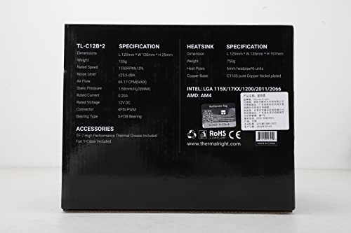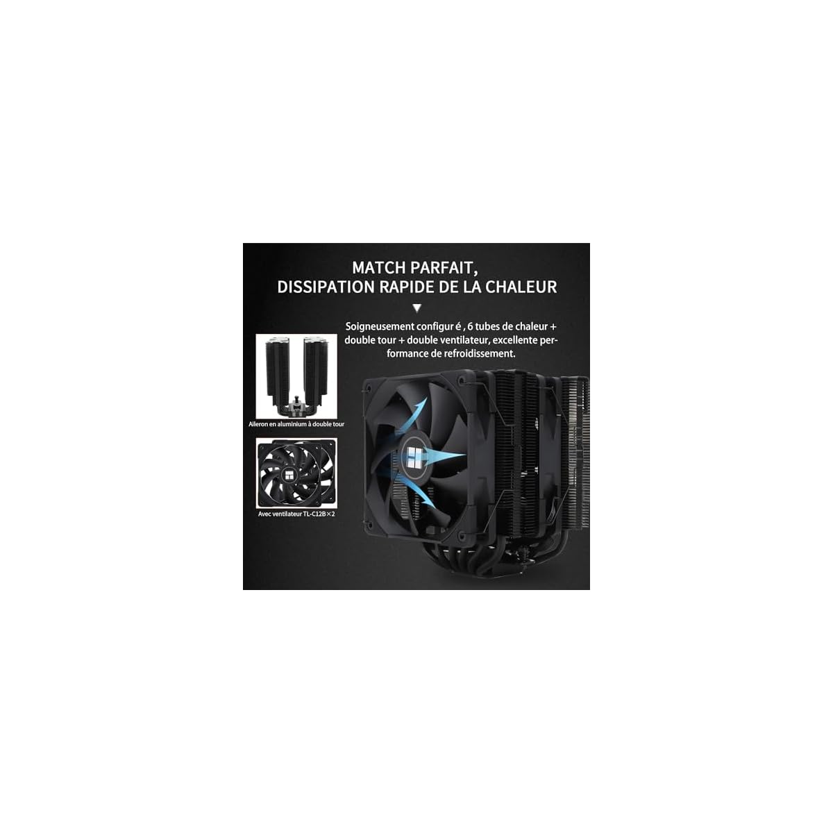 ?Specifiche del prodotto?Dissipatore CPU nero PA120 Dimensioni: 125 L x135 L x157 A mm 4 92×5 31×6 18 pollici Materiale dissipatore di calore: Il dissipatore CPU in alluminio è dotato di elementi di fissaggio metallici per piattaforme Intel e AMD per ottenere una migliore installazione Il raffreddamento a doppia torre è più forte
