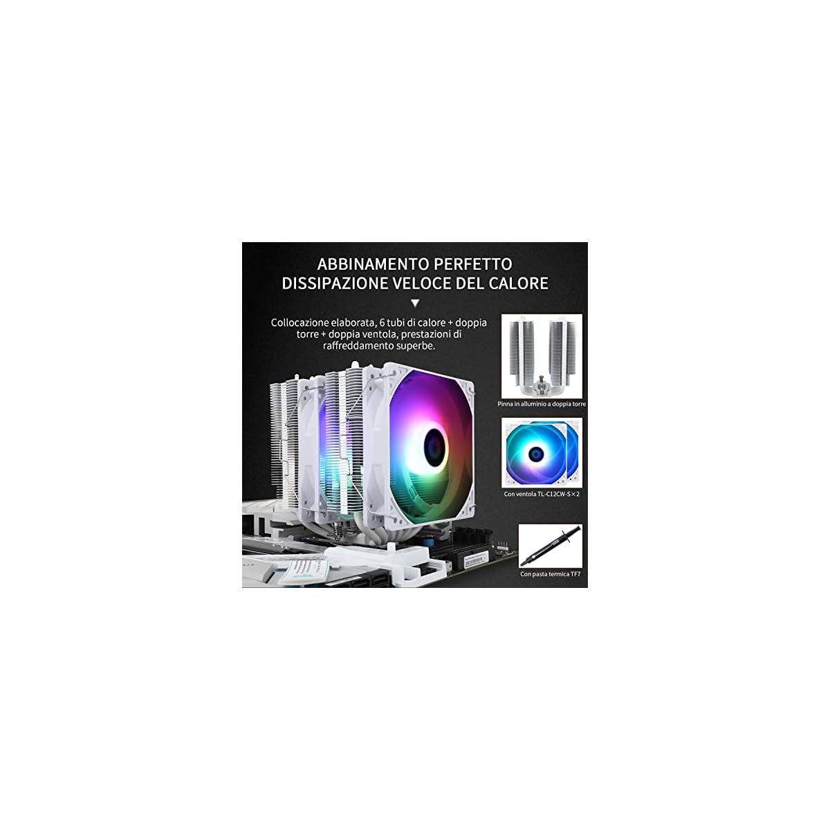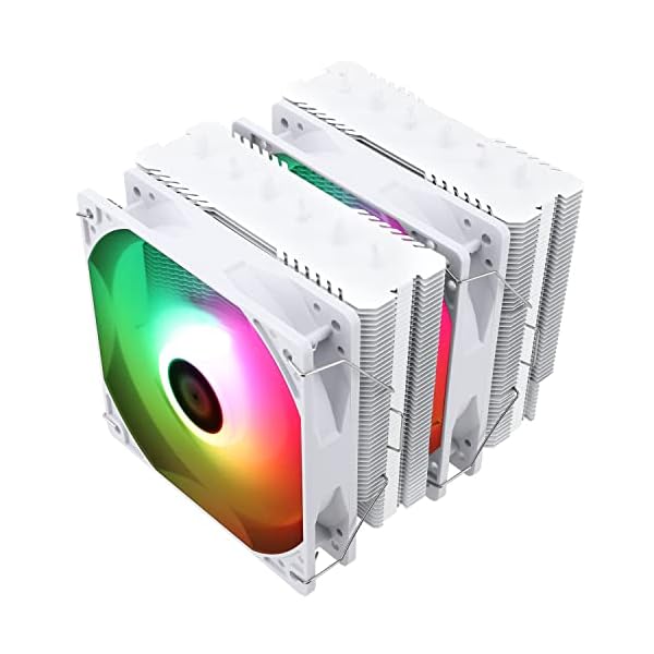 【2 ventilatori PWM】Modello:TL-C12C-S; Effetti luminosi ARGB colorati e splendidi; Ventilatore PWM di dimensione standard: 120x120x25mm (4.72×4.72×0.98 pollici); Peso del prodotto: 0.97kg (2.1lb); velocità della ventola (RPM): 1550rpm±10%; porta di alimentazione: 4pin; Tensione:12V; Flusso d’aria: 66.17CFM (MAX); Livello sonoro ≤ 25.6dB (A), lasciare spazio per il chip di memoria (RAM), in modo che l’installazione della CPU di raffreddamento del ghiaccio sia illimitata
