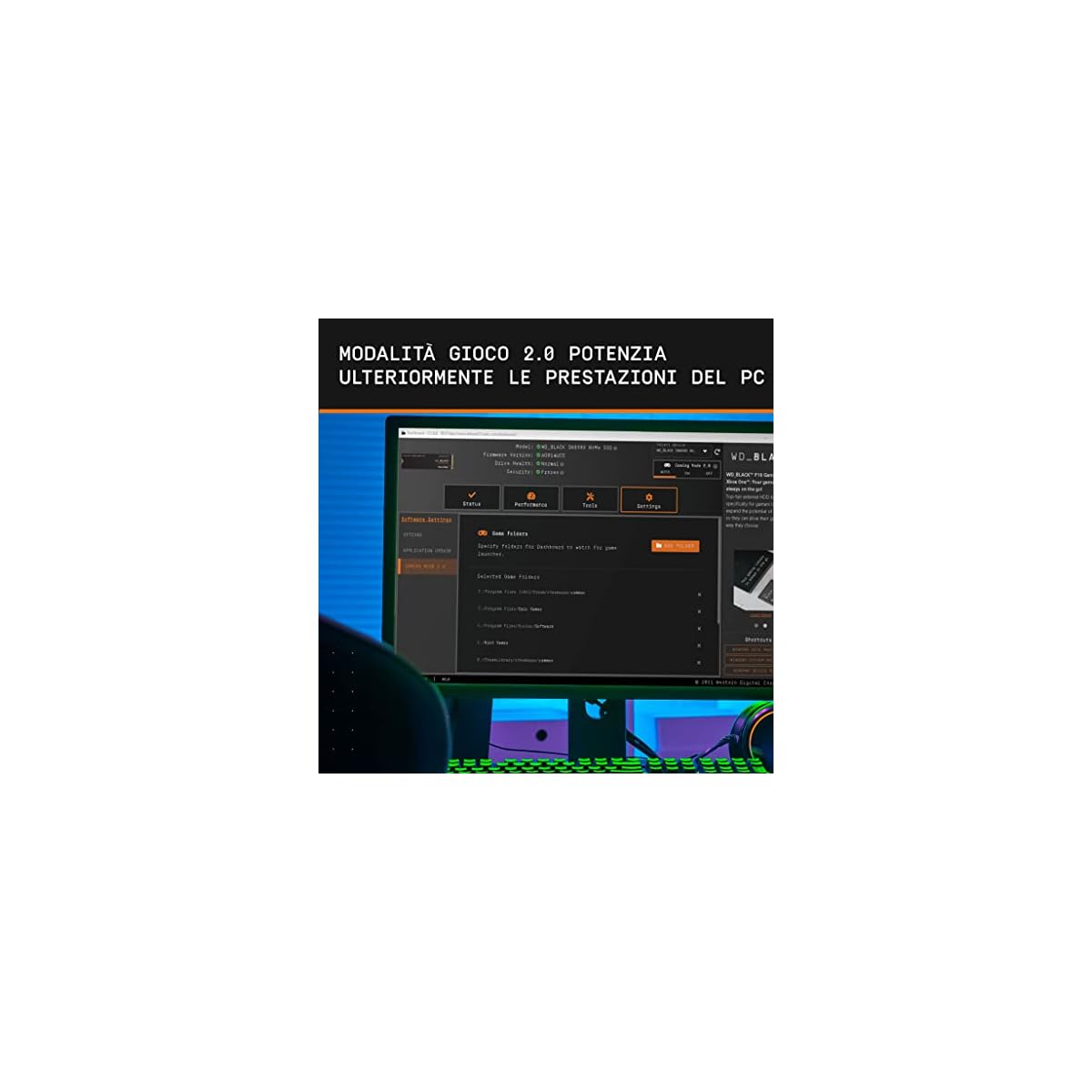 La WD_BLACK Dashboard monitora lo stato dell’unità, regola le luci RGB e attiva automaticamente la Modalità gioco 2.0 (solo per Windows).